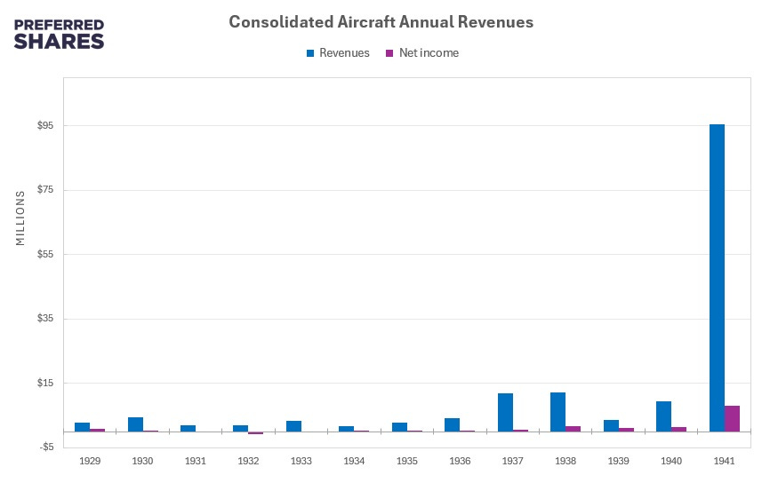 Won the largest Navy contract to date for airplanes with its “Catalina” PBY flying boat.