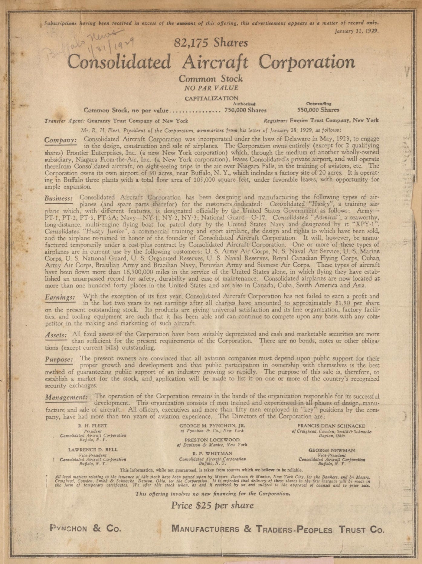 “Plane Co. Prepares to Expand”, New York Evening Post, February 11, 1929.
